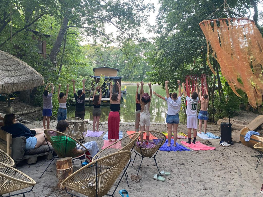 16 creatives meet at an off-grid site by the water near Potsdam, sleeping in yurts and tents. The site includes a sauna, campfire and a large practice room with a stage. Through workshops, artistic exchange, and collaborative sessions participants merge their disciplines and co-create (a) collective pieces. The week also includes nature activities and time to explore the area.